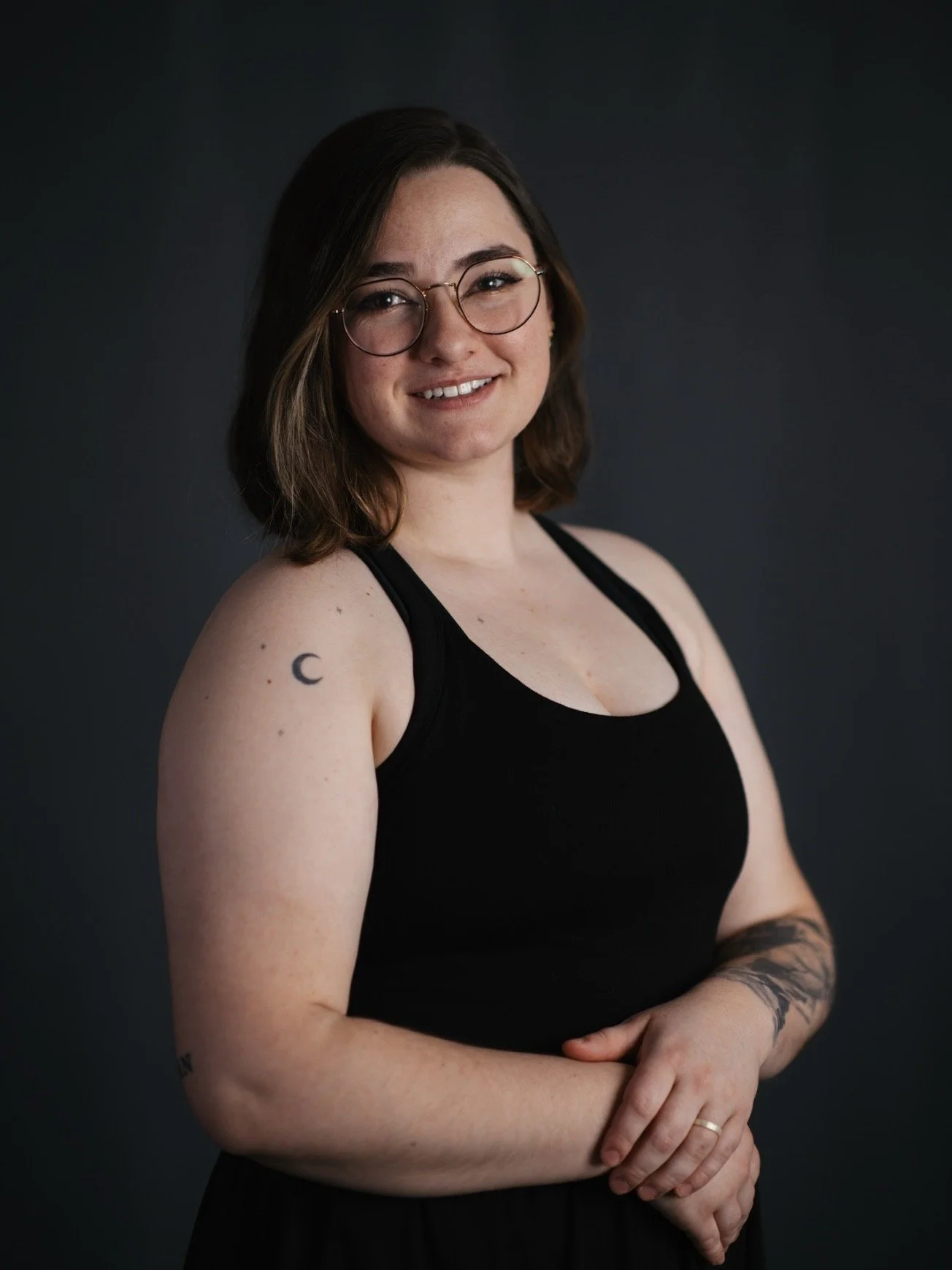 what happens when a painter starts tattooing?? megz has been a tattoo apprentice here at soft revolution since september 2024. Her art style is fun, whimsical, nostalgic, and full of attitude! she loves to celebrate women, and is a huge fan of american traditional tattoos, 60s + 70s fashion, thrifting, fantasy movies, and a good cup of coffee!